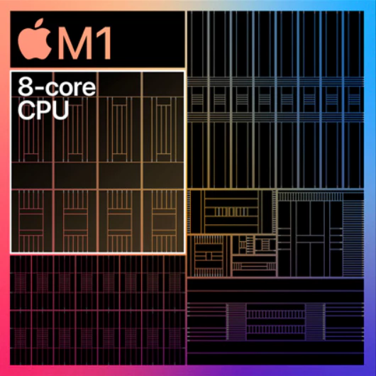 애플은 2020년 11월 11일, 애플 이벤트를 통해 Apple M 시리즈와 함께 MacBook Air를 발표했다. Intel(인텔), AMD와 달리 오직 애플 제품에서만 사용하기 위해 개발한 것이다. M1은 ARM의 big.LITTLE 기술을 채용한 CPU는 고성능 4 코어, 저전력 4 코어의 총 8 코어로 구성되었다.